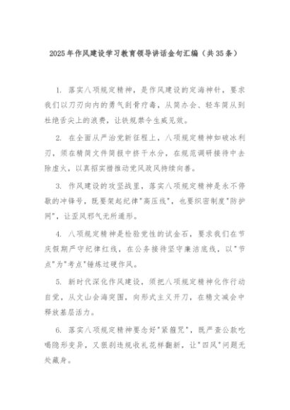 【七哥公文】2025年:2025年作风建设学习教育领导讲话金句汇编(共35条)+更多免费公文+VX:QiGeGongWen2024