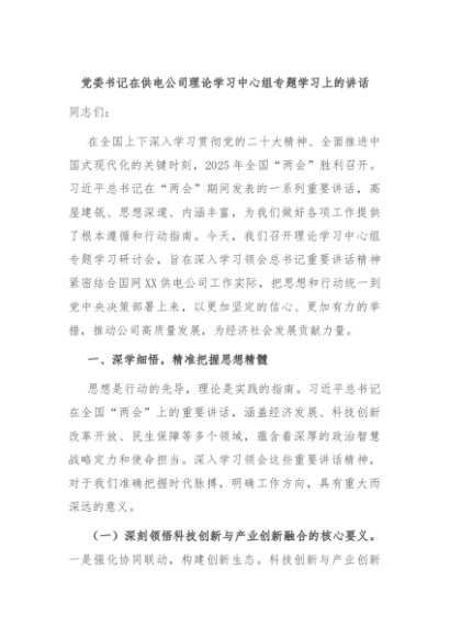 / 【七哥公文】2025年:党委书记在供电公司理论学习中心组专题学习上的讲话+更多免费公文+VX:QiGeGongWen2024