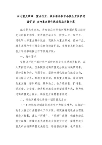 【七哥公文】2025年:加力重点领域、重点行业、城乡基层和中小微企业岗位挖潜扩容 支持重点群体就业创业实施方案+更多免费公文+VX:QiGeGongWen2024