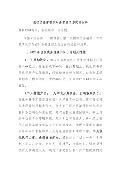 / 【七哥公文】2025年:债权债务清理及财务管理工作交流材料+更多免费公文+VX:QiGeGongWen2024