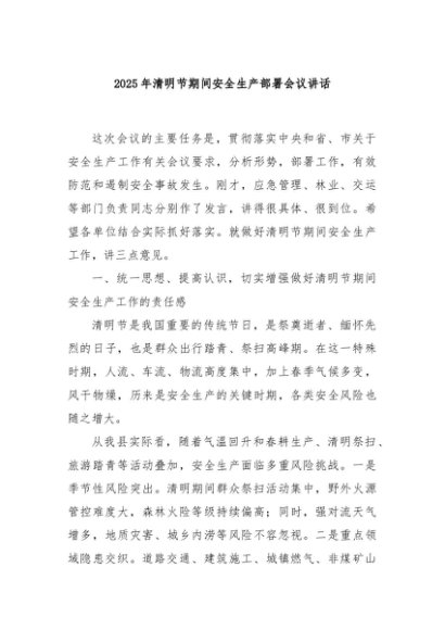 / 【七哥公文】2025年:2025年清明节期间安全生产部署会议讲话+更多免费公文+VX:QiGeGongWen2024