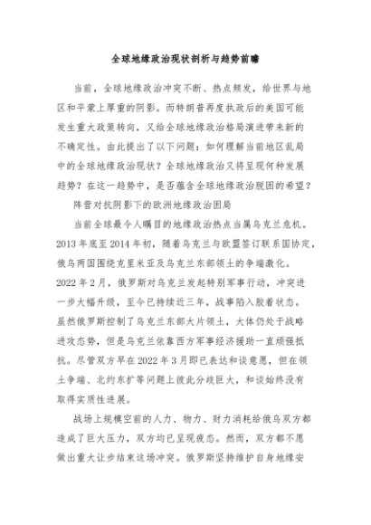 【七哥公文】2025年:全球地缘政治现状剖析与趋势前瞻+更多免费公文+VX:QiGeGongWen2024