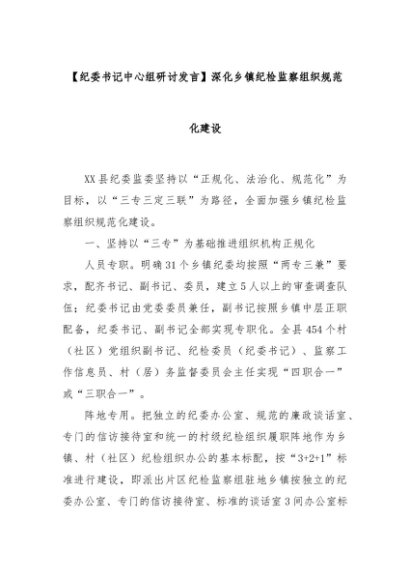【七哥公文】2025年:【纪委书记中心组研讨发言】深化乡镇纪检监察组织规范化建设+更多免费公文+VX:QiGeGongWen2024