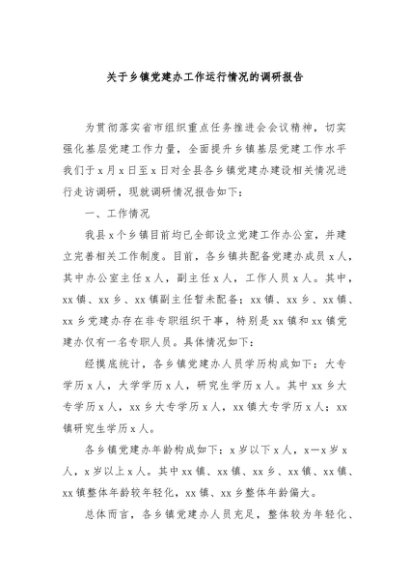 / 【七哥公文】2025年:关于乡镇党建办工作运行情况的调研报告+更多免费公文+VX:QiGeGongWen2024