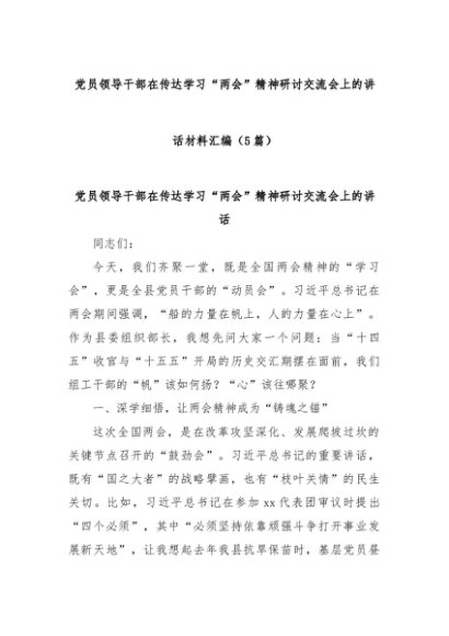 【七哥公文】2025年:(5篇)党员领导干部在传达学习“两会”精神研讨交流会上的讲话材料汇编+更多免费公文+VX:QiGeGongWen2024