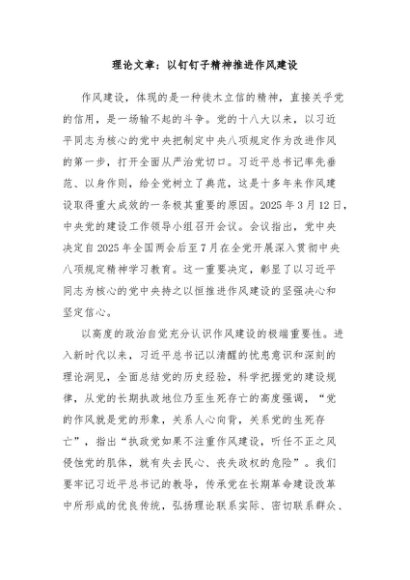 / 【七哥公文】2025年:理论文章:以钉钉子精神推进作风建设+更多免费公文+VX:QiGeGongWen2024