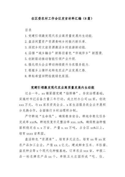 / 【七哥公文】2025年:(8篇)在区委农村工作会议发言材料汇编+更多免费公文+VX:QiGeGongWen2024