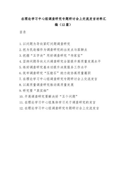 【七哥公文】2025年:(12篇)在理论学习中心组调查研究专题研讨会上交流发言材料汇编+更多免费公文+VX:QiGeGongWen2024