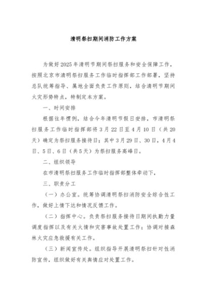 / 【七哥公文】2025年:清明祭扫期间消防工作方案+更多免费公文+VX:QiGeGongWen2024