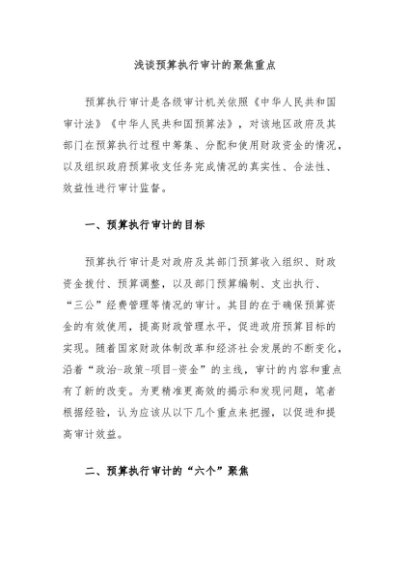 【七哥公文】2025年:浅谈预算执行审计的聚焦重点+更多免费公文+VX:QiGeGongWen2024