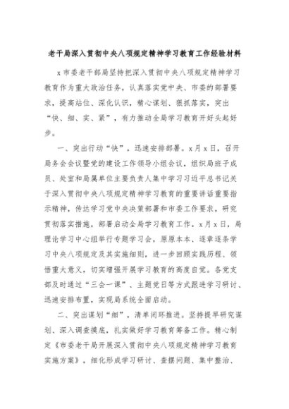 【七哥公文】2025年:老干局深入贯彻中央八项规定精神学习教育工作经验材料+更多免费公文+VX:QiGeGongWen2024