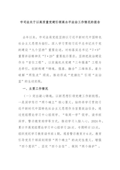 【七哥公文】2025年:市司法关于以高质量党建引领高水平法治工作情况的报告+更多免费公文+VX:QiGeGongWen2024