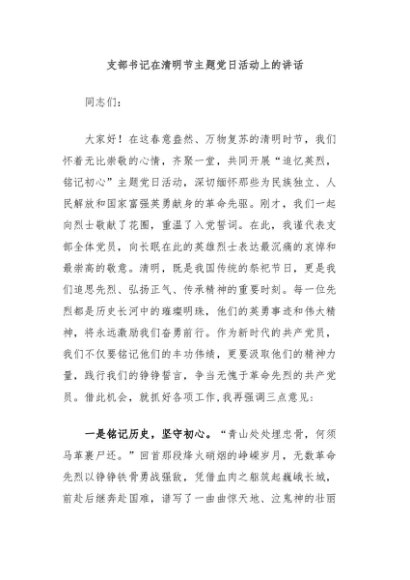【七哥公文】2025年:支部书记在清明节主题党日活动上的讲话+更多免费公文+VX:QiGeGongWen2024