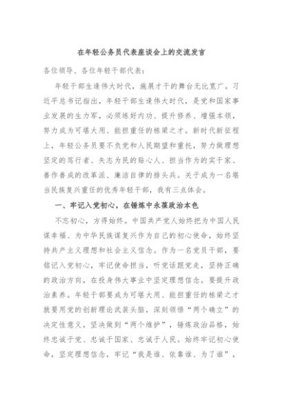 / 【七哥公文】2025年:在年轻公务员代表座谈会上的交流发言+更多免费公文+VX:QiGeGongWen2024