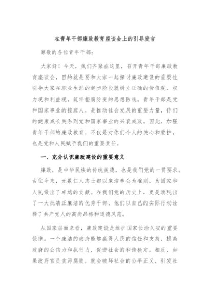 / 【七哥公文】2025年:在青年干部廉政教育座谈会上的引导发言+更多免费公文+VX:QiGeGongWen2024