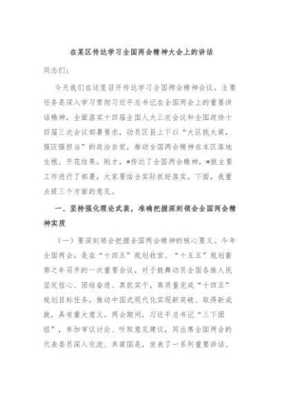 / 【七哥公文】2025年:在某区传达学习全国两会精神大会上的讲话+更多免费公文+VX:QiGeGongWen2024