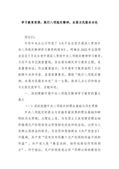 / 【七哥公文】2025年:学习教育党课:践行八项规定精神,永葆为民服务本色+更多免费公文+VX:QiGeGongWen2024
