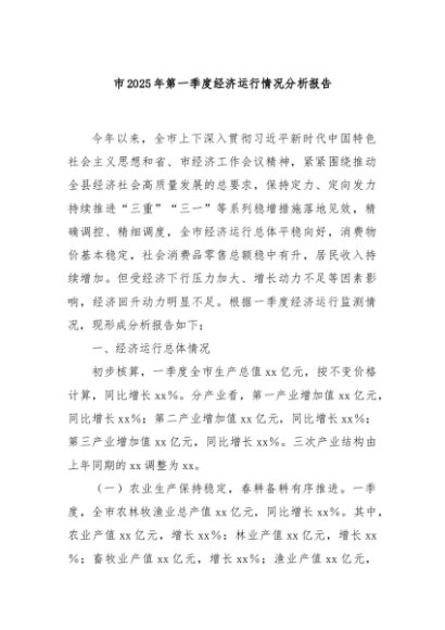 / 【七哥公文】2025年:市2025年第一季度经济运行情况分析报告+更多免费公文+VX:QiGeGongWen2024