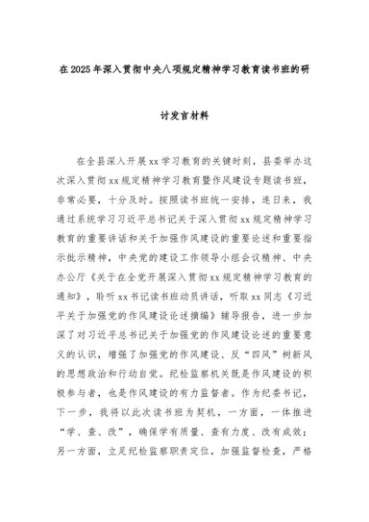 【七哥公文】2025年:在2025年深入贯彻中央八项规定精神学习教育读书班的研讨发言材料+更多免费公文+VX:QiGeGongWen2024