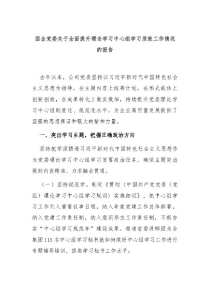 【七哥公文】2025年:国企党委关于全面提升理论学习中心组学习质效工作情况的报告+更多免费公文+VX:QiGeGongWen2024