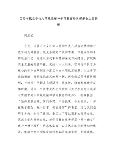 【七哥公文】2025年:区委书记在中央八项规定精神学习教育动员部署会上的讲话+更多免费公文+VX:QiGeGongWen2024
