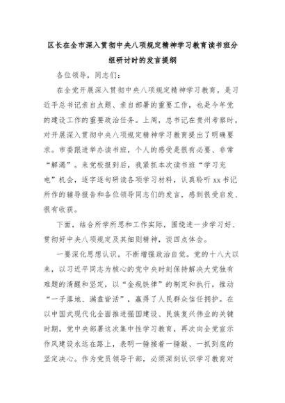 【七哥公文】2025年:区长在全市深入贯彻中央八项规定精神学习教育读书班分组研讨时的发言提纲+更多免费公文+VX:QiGeGongWen2024