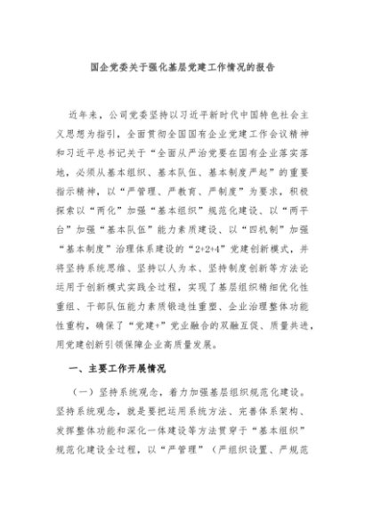 / 【七哥公文】2025年:国企党委关于强化基层党建工作情况的报告+更多免费公文+VX:QiGeGongWen2024