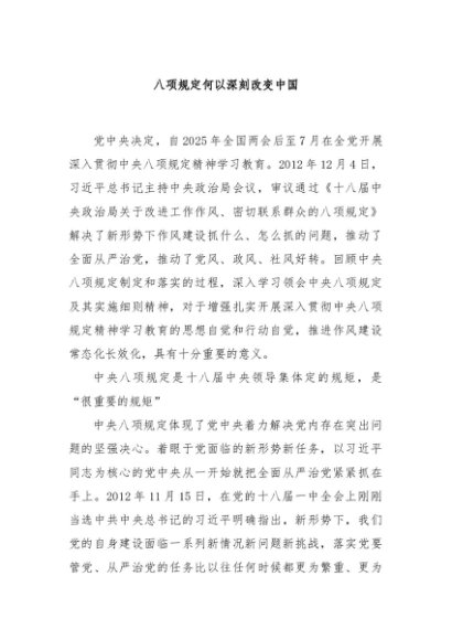 【七哥公文】2025年:八项规定何以深刻改变中国+更多免费公文+VX:QiGeGongWen2024