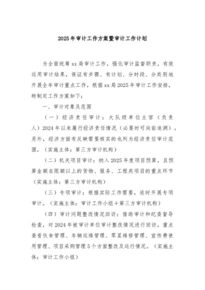 / 【七哥公文】2025年:2025年审计工作方案暨审计工作计划+更多免费公文+VX:QiGeGongWen2024