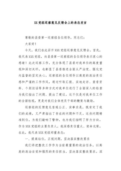 / 【七哥公文】2025年:XX党组巡察意见反馈会上的表态发言+更多免费公文+VX:QiGeGongWen2024