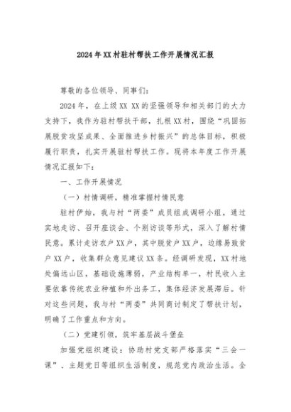 【七哥公文】2025年:2024年XX村驻村帮扶工作开展情况汇报+更多免费公文+VX:QiGeGongWen2024