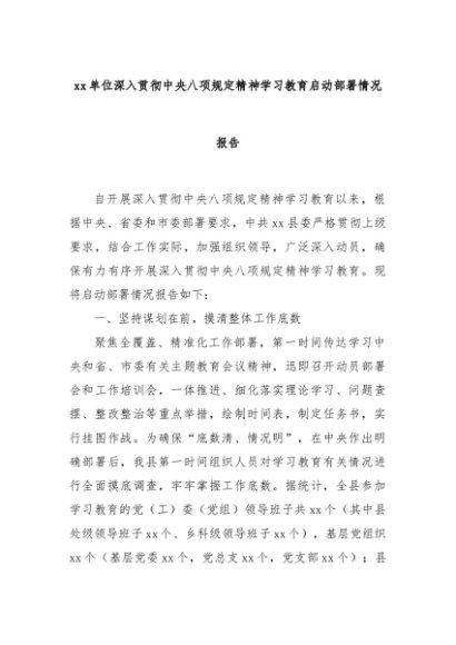 【七哥公文】2025年:xx单位深入贯彻中央八项规定精神学习教育启动部署情况报告+更多免费公文+VX:QiGeGongWen2024