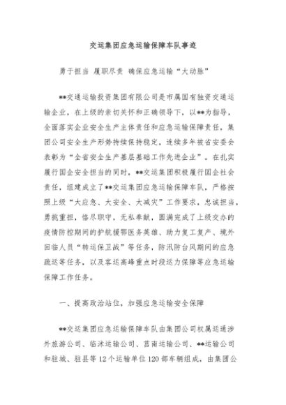 【七哥公文】2025年:交运集团应急运输保障车队事迹+更多免费公文+VX:QiGeGongWen2024