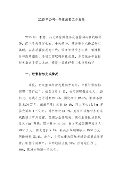 / 【七哥公文】2025年:2025年公司一季度经营工作总结+更多免费公文+VX:QiGeGongWen2024