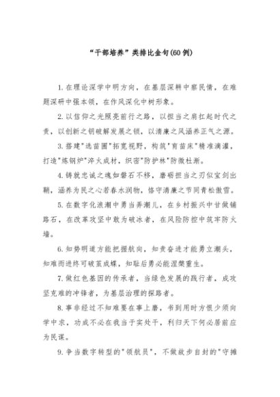 / 【七哥公文】2025年:(60例)“干部培养”类排比金句+更多免费公文+VX:QiGeGongWen2024