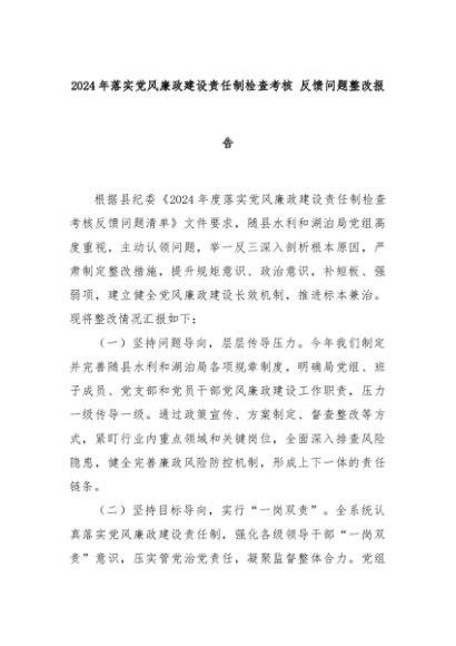 【七哥公文】2025年:2024年落实党风廉政建设责任制检查考核 反馈问题整改报告+更多免费公文+VX:QiGeGongWen2024