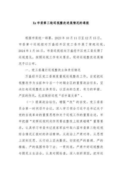 / 【七哥公文】2025年:Xx市委第三轮巡视整改进展情况的通报+更多免费公文+VX:QiGeGongWen2024