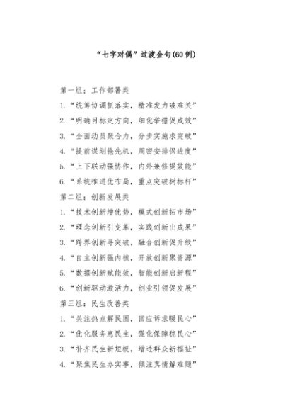 / 【七哥公文】2025年:(60例)七字对偶”过渡金句+更多免费公文+VX:QiGeGongWen2024
