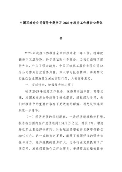 【七哥公文】2025年:中国石油分公司领导专题学习2025年政府工作报告心得体会+更多免费公文+VX:QiGeGongWen2024