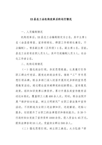 【七哥公文】2025年:XX县总工会机构改革后的运行情况+更多免费公文+VX:QiGeGongWen2024