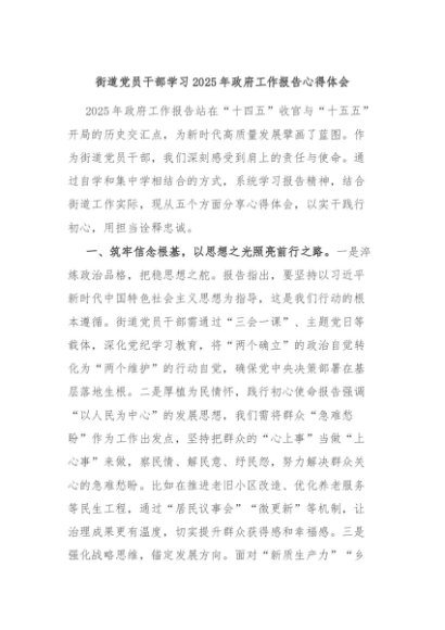 / 【七哥公文】2025年:街道党员干部学习2025年政府工作报告心得体会+更多免费公文+VX:QiGeGongWen2024