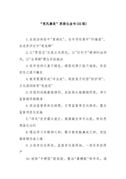 / 【七哥公文】2025年:(32组)“党风廉政”类排比金句+更多免费公文+VX:QiGeGongWen2024