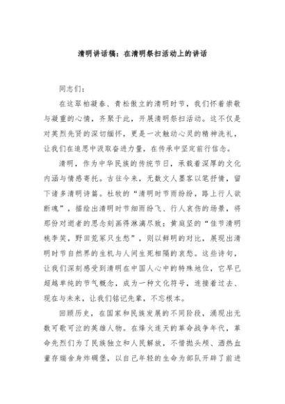 【七哥公文】2025年:清明讲话稿:在清明祭扫活动上的讲话+更多免费公文+VX:QiGeGongWen2024