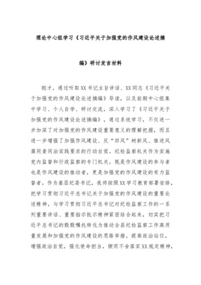 【七哥公文】2025年:理论中心组学习《习总书记关于加强党的作风建设论述摘编》研讨发言材料+更多免费公文+VX:QiGeGongWen2024