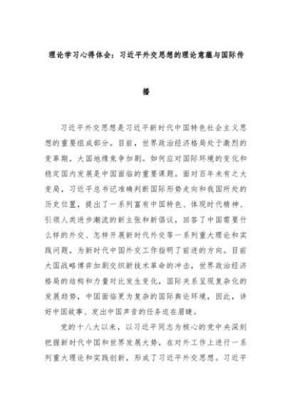 【七哥公文】2025年:理论学习心得体会:习近平外交思想的理论意蕴与国际传播+更多免费公文+VX:QiGeGongWen2024