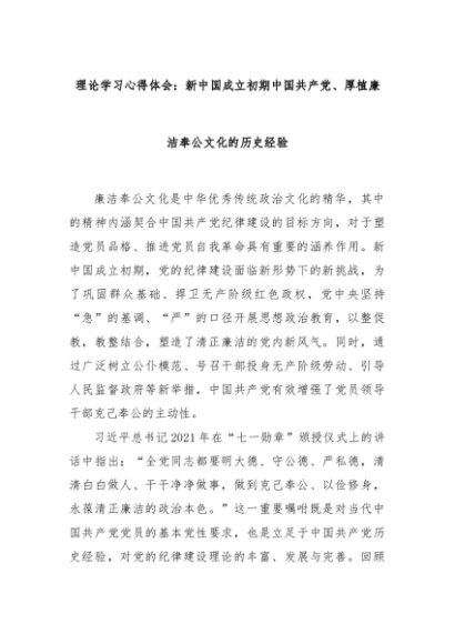 【七哥公文】2025年:理论学习心得体会:新中国成立初期中国共产党、厚植廉洁奉公文化的历史经验+更多免费公文+VX:QiGeGongWen2024