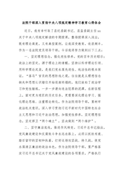 【七哥公文】2025年:法院干部深入贯彻中央八项规定精神学习教育心得体会+更多免费公文+VX:QiGeGongWen2024