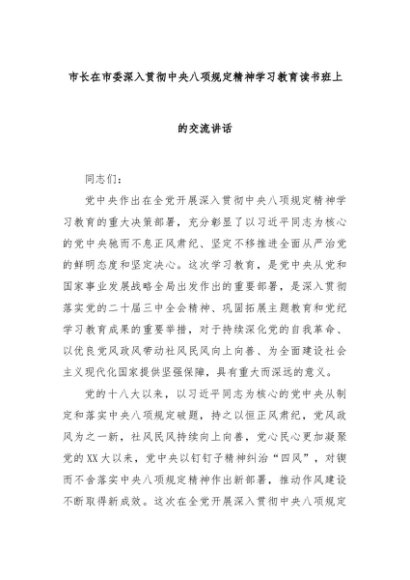 【七哥公文】2025年:市长在市委深入贯彻中央八项规定精神学习教育读书班上的交流讲话+更多免费公文+VX:QiGeGongWen2024