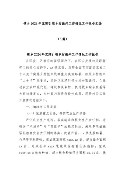 【七哥公文】2025年:(5篇)镇乡2024年党建引领乡村振兴工作情况工作报告汇编+更多免费公文+VX:QiGeGongWen2024