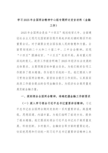 【七哥公文】2025年:学习2025年全国两会精神中心组专题研讨发言材料(金融工作)+更多免费公文+VX:QiGeGongWen2024